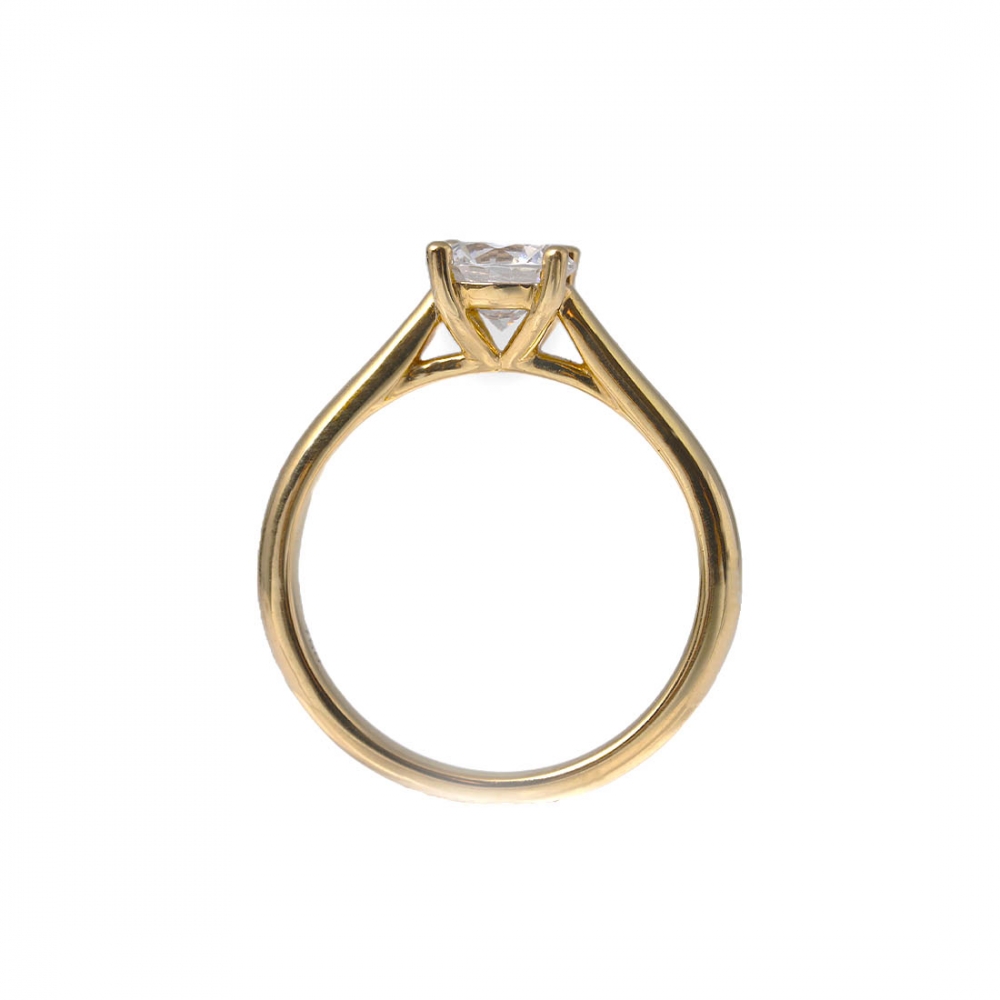 En vacker och klassisk ringmodell med en rundad skena som smalnar av vid klosättningen. Fyra nätta klor håller om briljanten på plats och låter maximalt med ljus reflekteras i stenen. Passar perfekt som förlovnings- eller vigselring och såklart även som en vacker ring att bära varje dag.