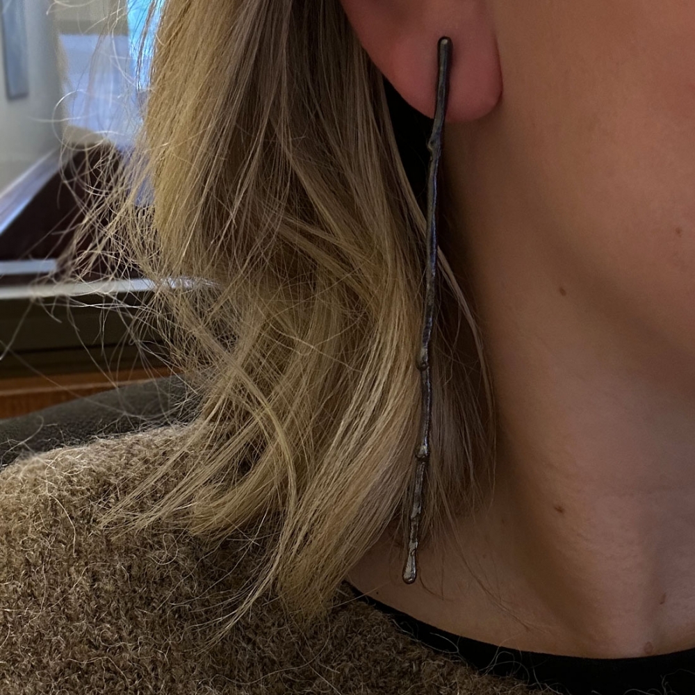 Långa örhängen likt en istapp som droppar och hänger fint på örat. Bjørg är ett norskt varumärke som leker med organiska former samtidigt som helheten för det mesta är mjuk och elegant.