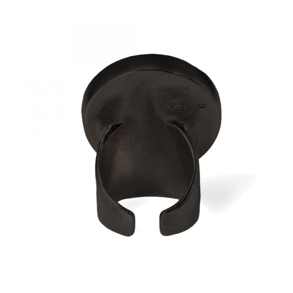 Ring i oxiderat silver med en stor rund spegel från Bjørg.