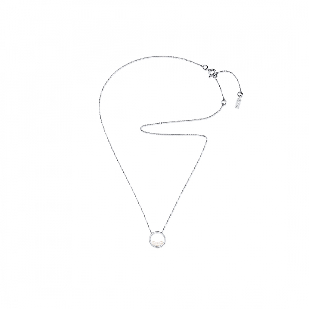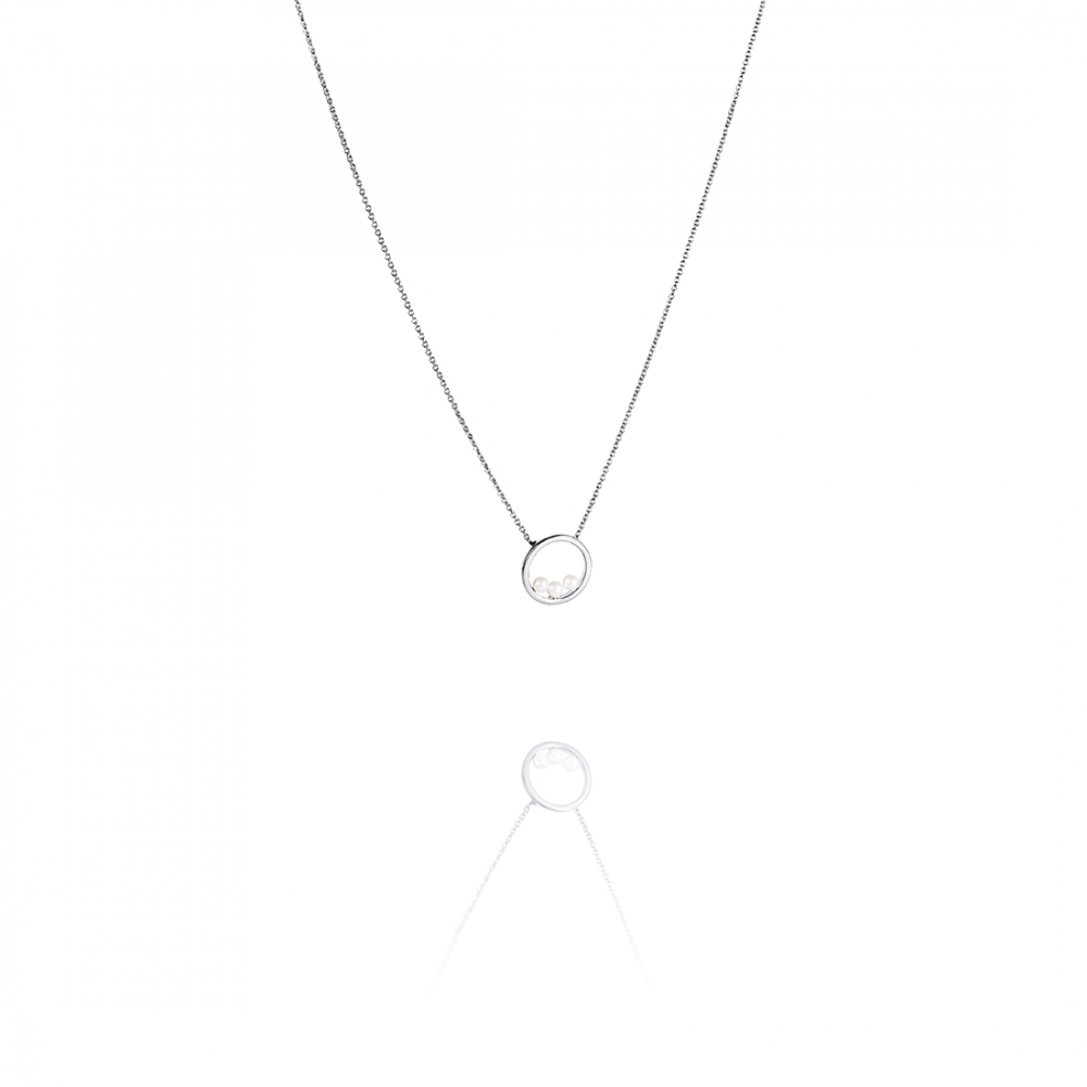 Halsband med odlade sötvattenspärlor inuti en liten ring på en tunn kedja i återvunnet sterling silver.