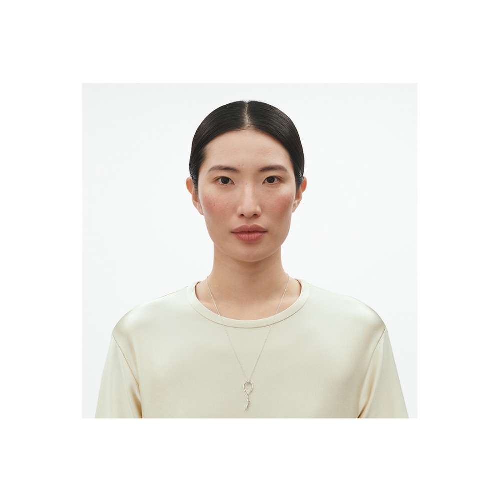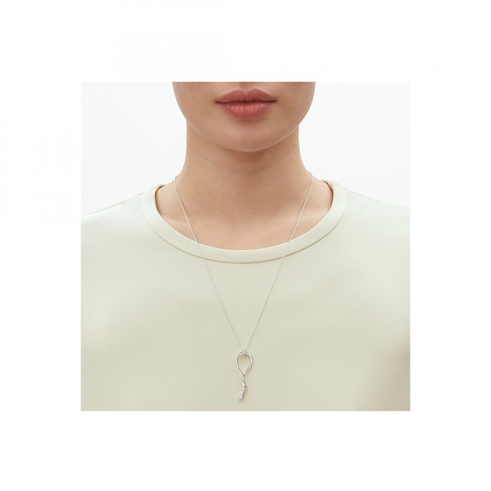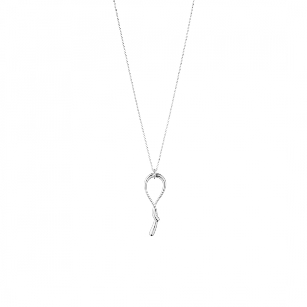Hänge med silverkedja tillverkat i 925 sterlingsilver från Georg Jensens Mercy-kollektion. De mjukt formade linjerna i detta silverhänge återspeglar Jacqueline Rabuns poetiska tolkning av smyckesdesign. De eleganta kurvorna fångar känslan av tidens ständiga flöde och de oväntade vägval som formar livet. Det stilrena hänget, kombinerat med den tunna silverkedjan, ger en diskret men sofistikerad elegans som lyfter varje outfit.