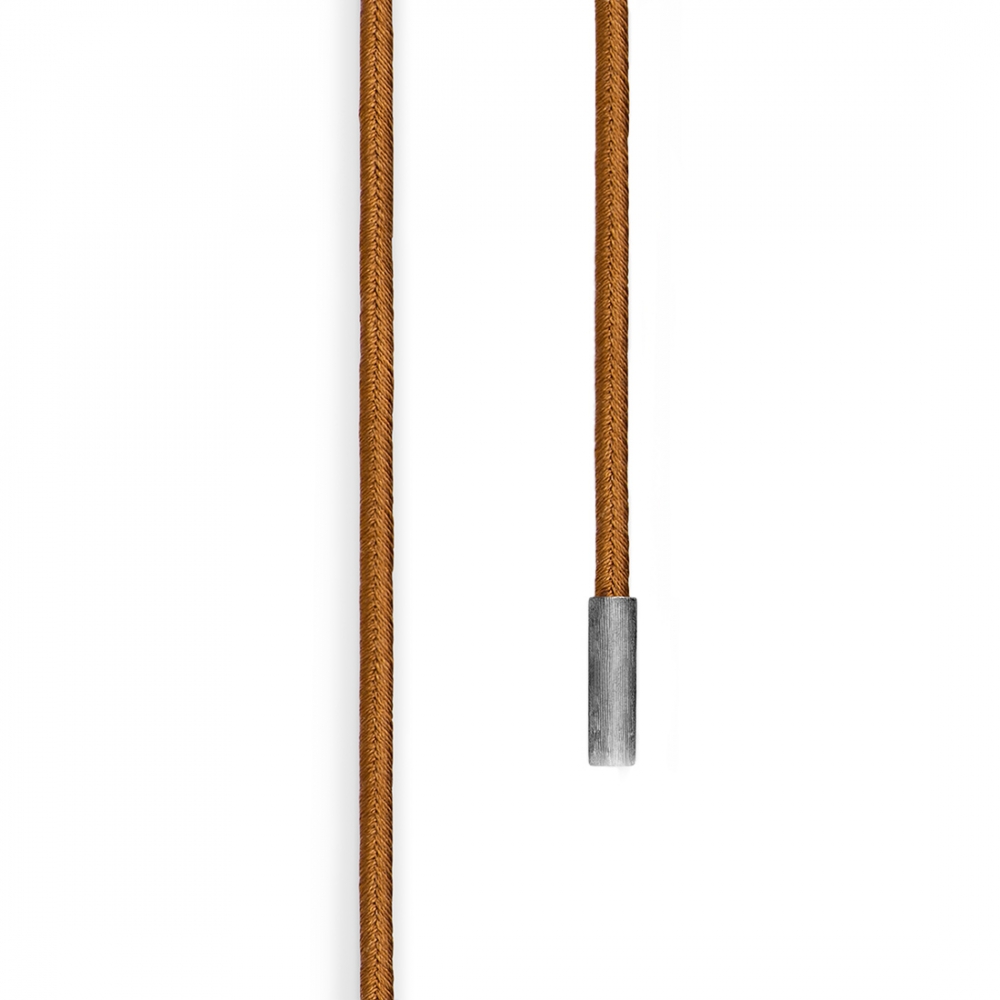 Snodden är gjord av finaste sidenkvaliteten med oxiderade silverdobbar med texturerad yta designade av Charlotte Lynggaard. Passar till alla hängen från OLE LYNGGAARD COPENHAGEN.