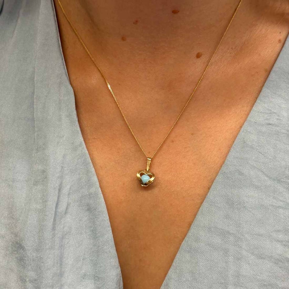 Litet och klassisk hänge i återvunnet guld med ett öppet hjärtat med en cabochonslipad rund sten. Alla månadsstenar har olika unika egenskaper och sägs ge extra styrka, kraft och energi till dess bärare. Månadsstenen för december är turkos. Läs mer om de olika månadsstenarna och dess egenskaper här.