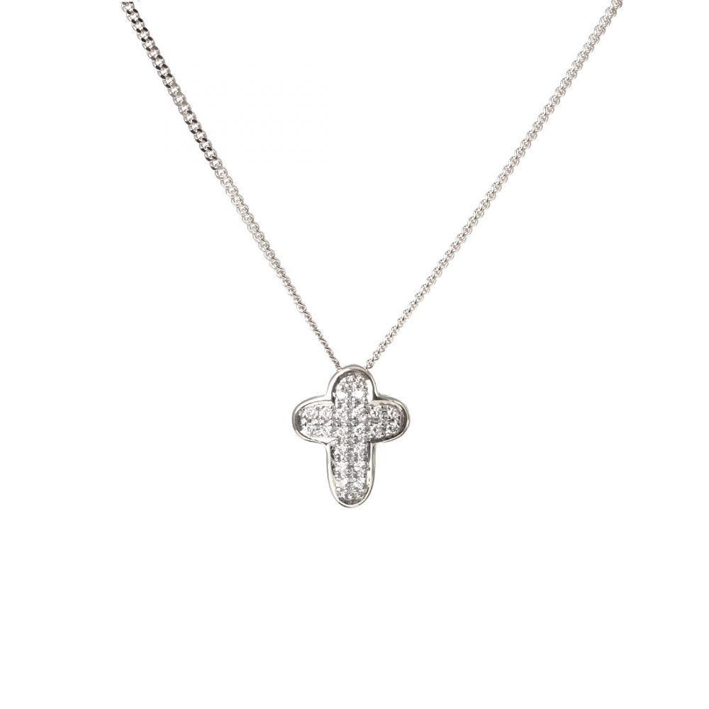 Rundat kors i 18k vitguld från Carl Hoff med 20 briljantslipade diamanter.
