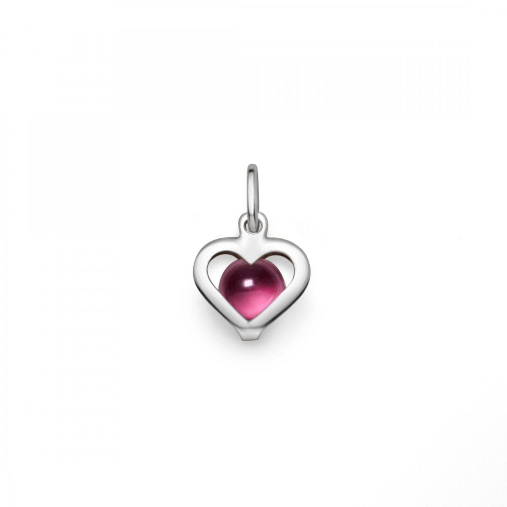 Litet och klassisk hänge i återvunnet sterlingsilver med ett öppet hjärtat med en cabochonslipad rund sten. Alla månadsstenar har olika unika egenskaper och sägs ge extra styrka, kraft och energi till dess bärare. Månadsstenen för februari är ametist. Läs mer om de olika månadsstenarna och dess egenskaper här.