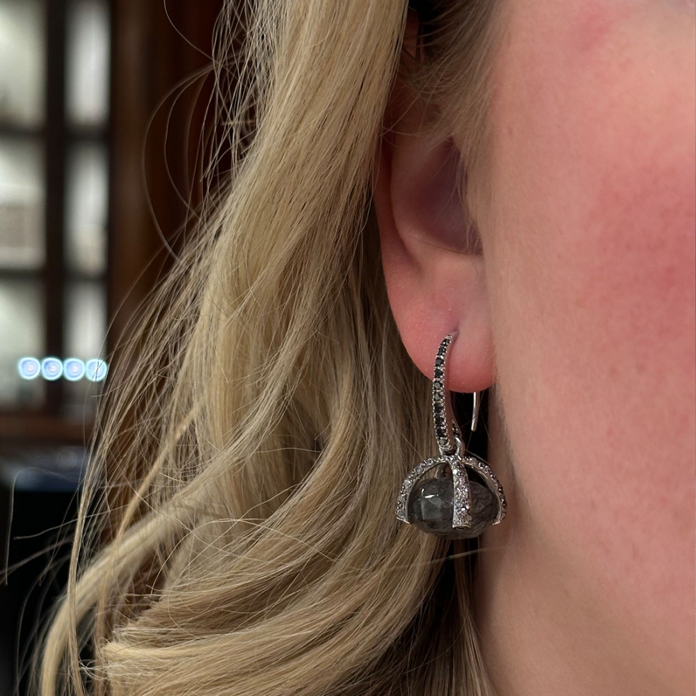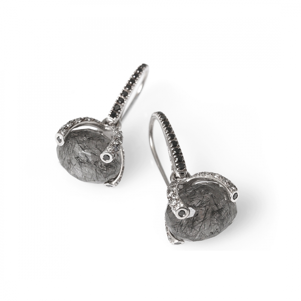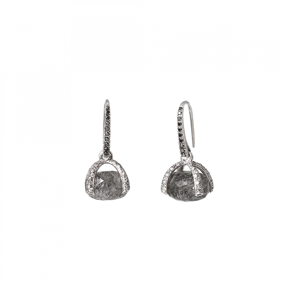 Nanis Bon Bon Örhängen, 18k Vitguld med rutilkvarts och svarta diamanter