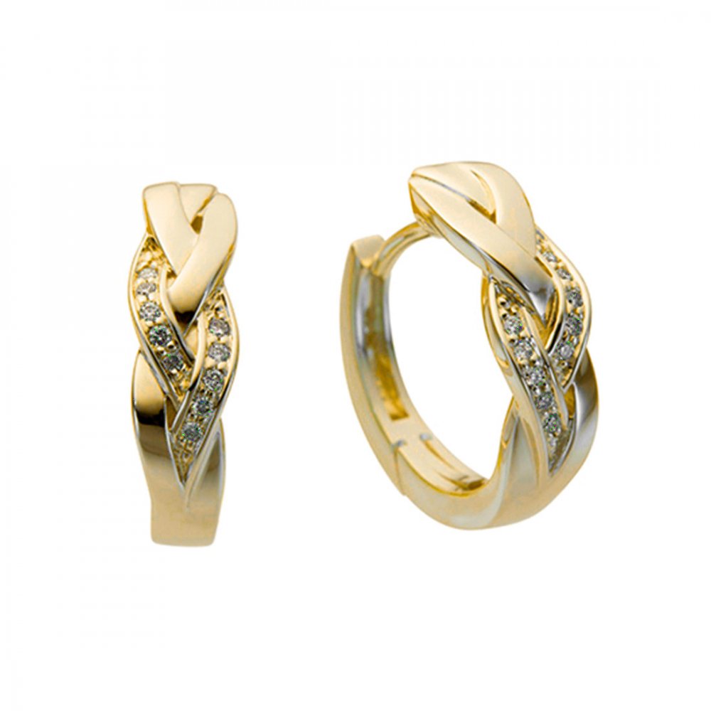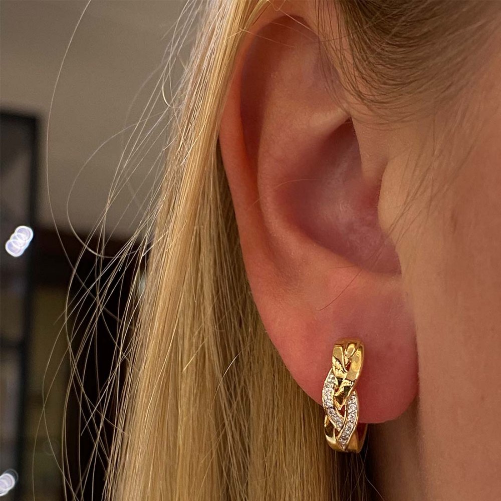 De flätade creolerna skapar ett intressant och livligt intryck. Diamanterna tillför en lyxig och kreativ tolkning av ett vardagssmycke.