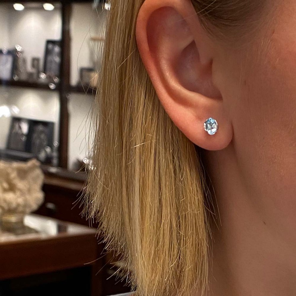Små, enkla och stilrena örhängen med ovala sky blue topaser. Den ovala formen på stenen ger ett mjuk elegant intryck. Den raka fattningen framhäver stenen på bästa sätt. En perfekt morgongåva, födelsedags- eller bröllopspresent.