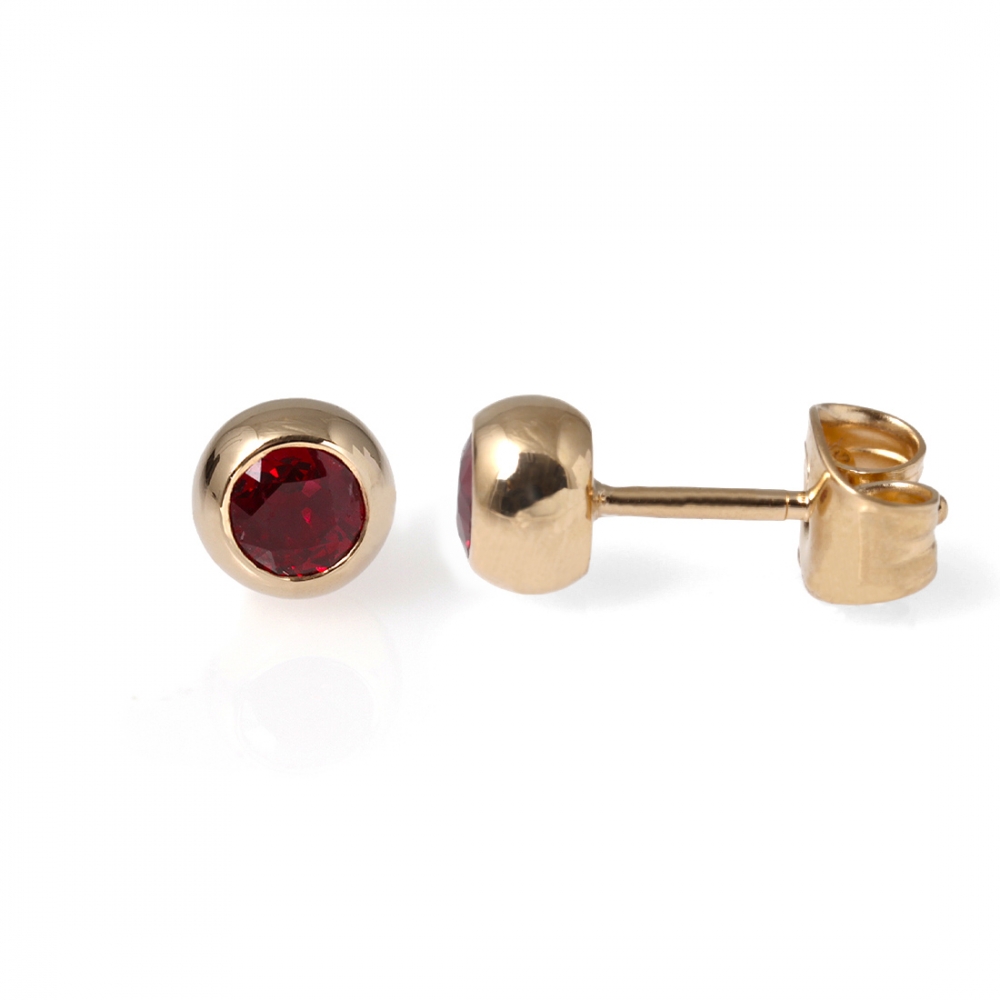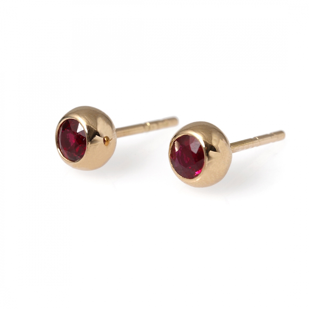 Rubinörhängen med en rund kant i 18k guld från Carl Hoff.