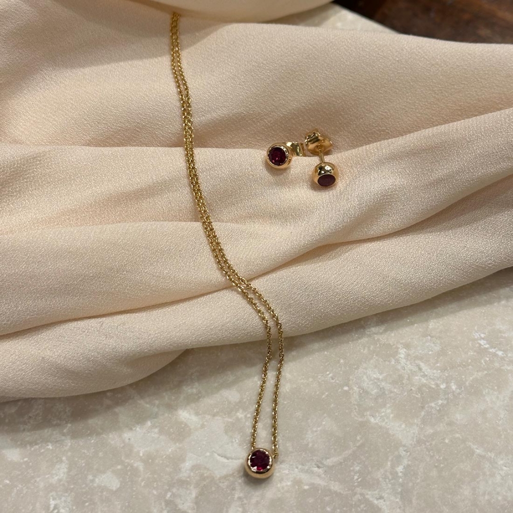 Klassiska örhängen som vi kallar för däck, där guldet omfamnar stenen. Dessa läckra och ursnygga rubinörhängen är en perfekt gåva till den du älskar. Kombinationen av 3,5 mm rubiner med en lyxig inramning i 18k guld passar utmärkt till speciella tillfällen. Mjuk sofistikerad design som passar lika bra till vardags som fest.
