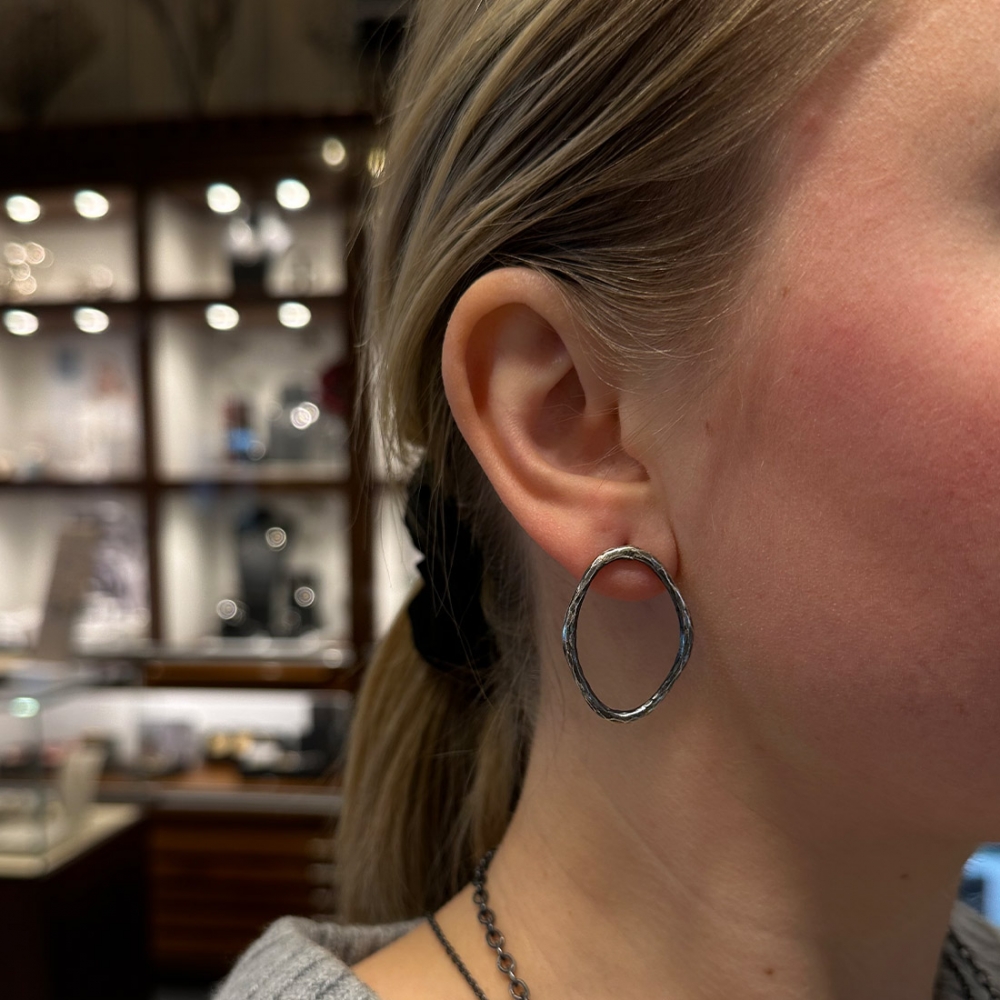 Handgjorda örhängen som består av en cirkel i hamrat silver. Perfekta örhängen till vardags som ändå känns uppklädda med sin fina yta. Bohemian Luxury när den är som bäst!