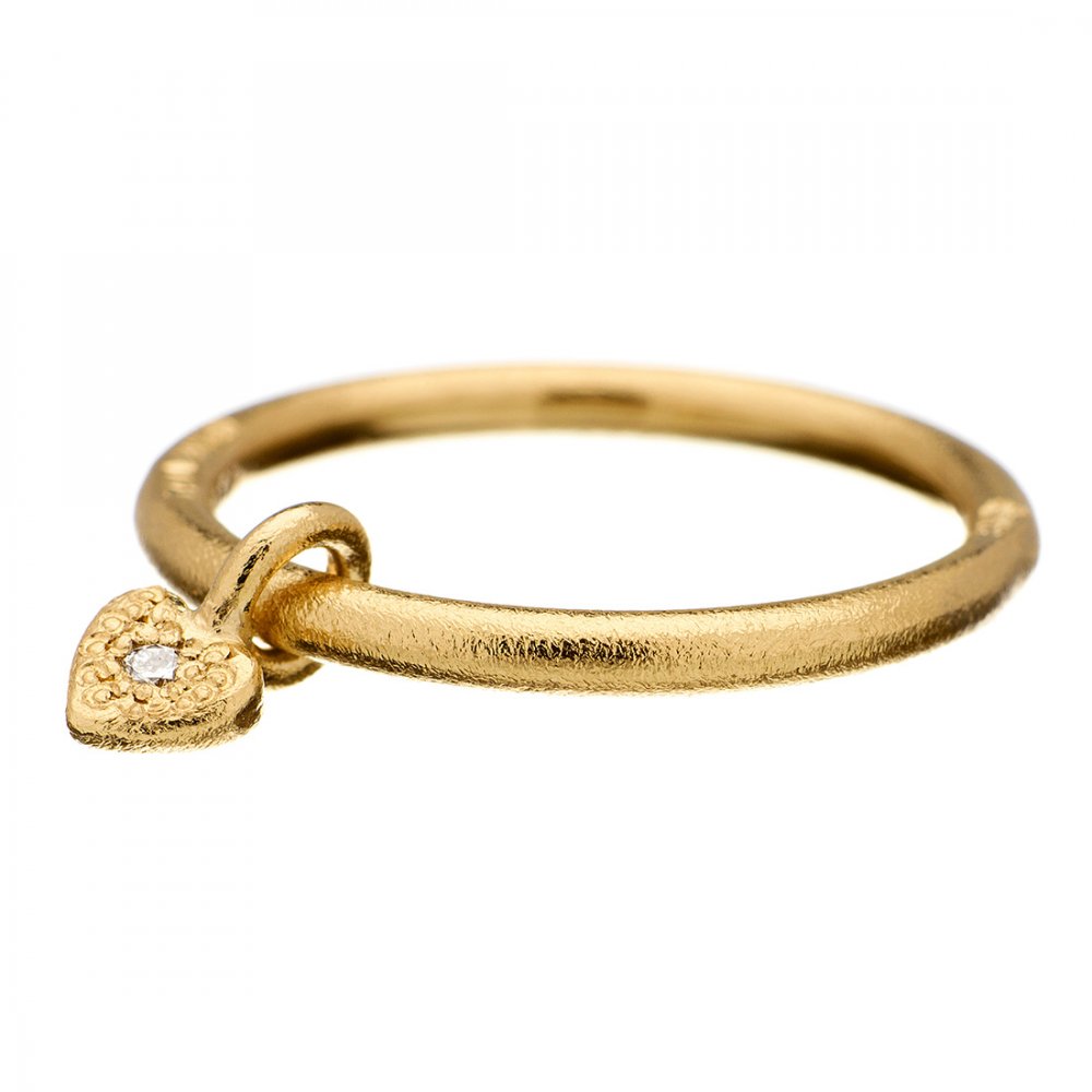 Ring i 18 k gult guld med en briljantslipad diamant på 0,02 ct infattad i ett litet hjärta från Sandberg.