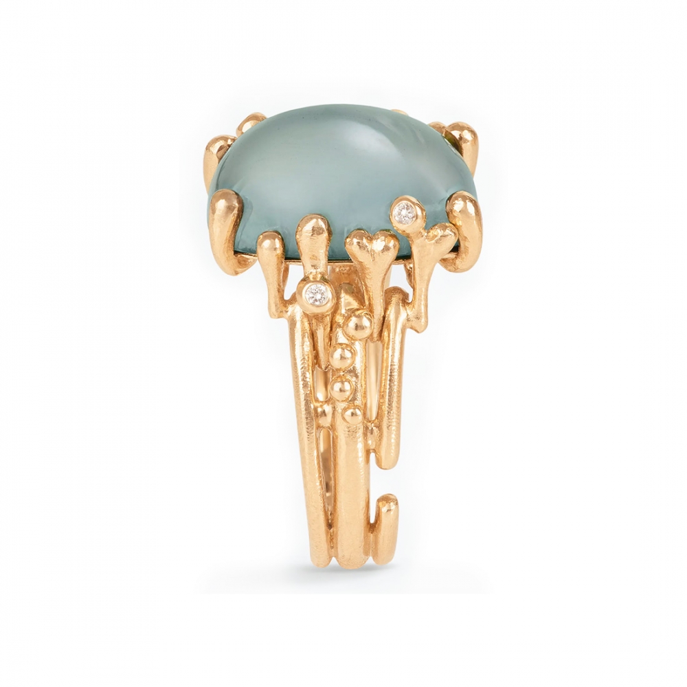 Boho ring från OLE LYNGGAARD COPENHAGEN i 18k guld med akvamarin och 5 briljantslipade diamanter.