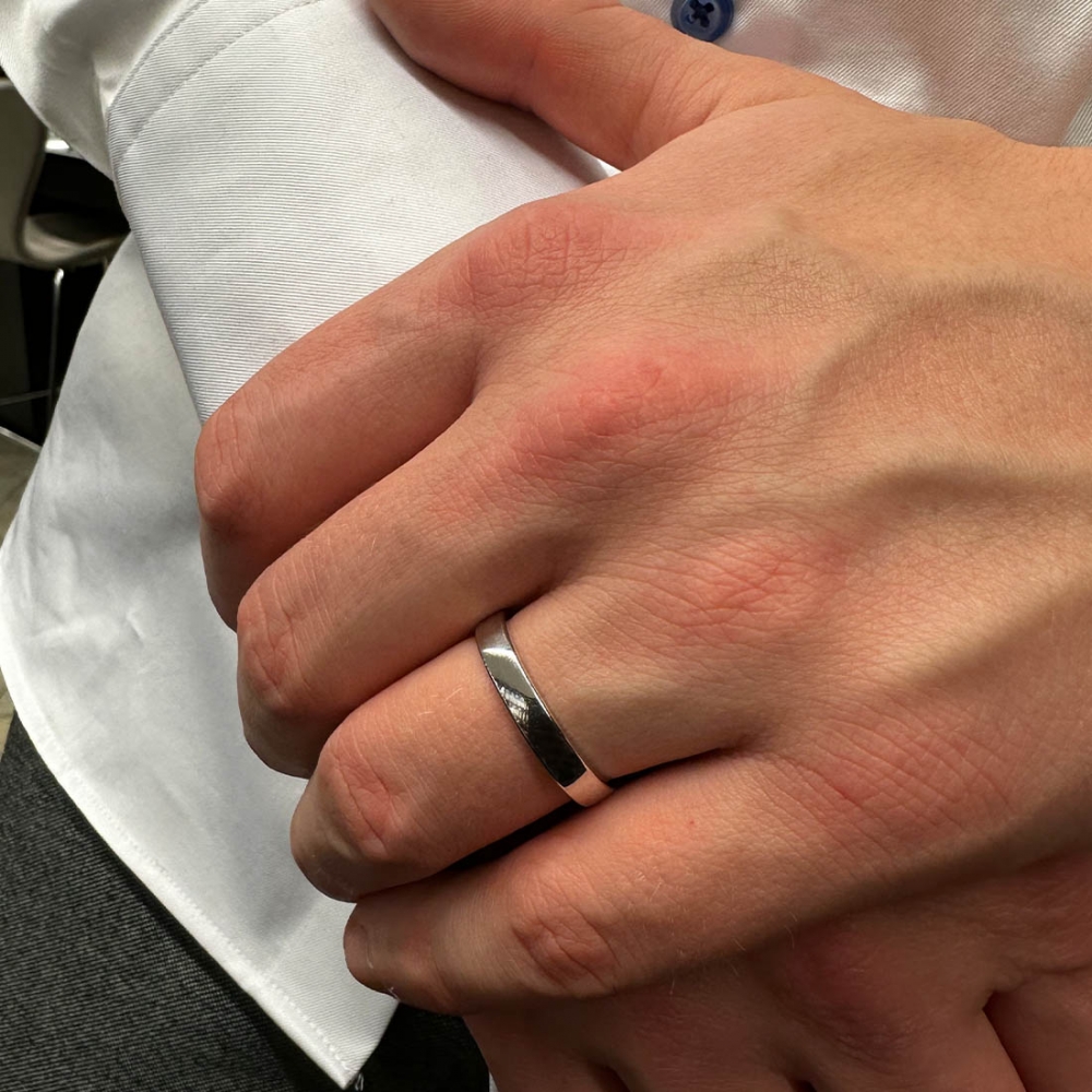 Slät förlovningsring i vitguld från Carl Hoff och vår egen verkstad.