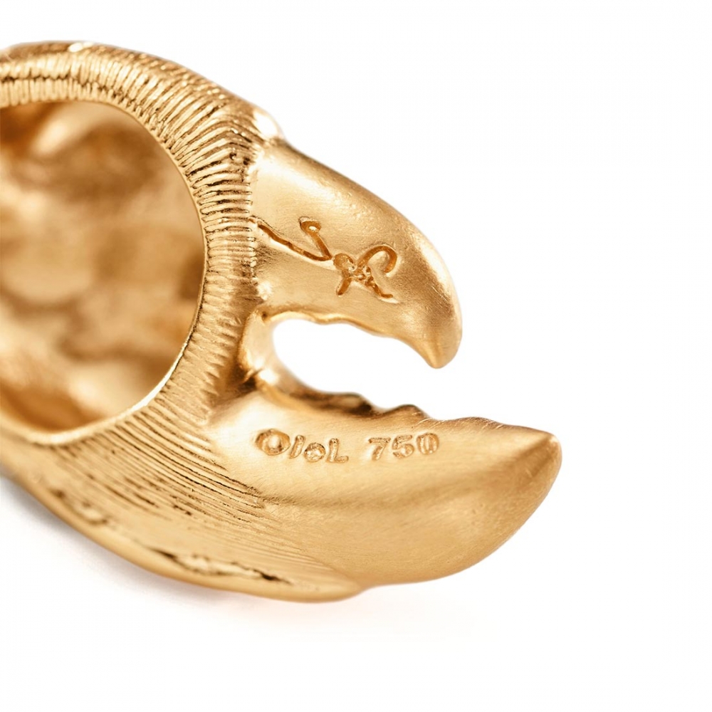 Detta armband består av ett litet brabbklo-hänge tillverkat av 18k gult guld på en justerbar, beige snodd. Klon har en unik textur sammansatt av en avancerad blandning av fyra olika typer av ytor, handgjorda av mästare i guldsmeder.